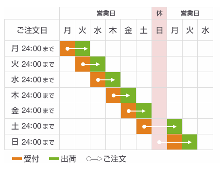 納期も早く、最短納期は24時までの注文で翌営業日に発送してくれます!