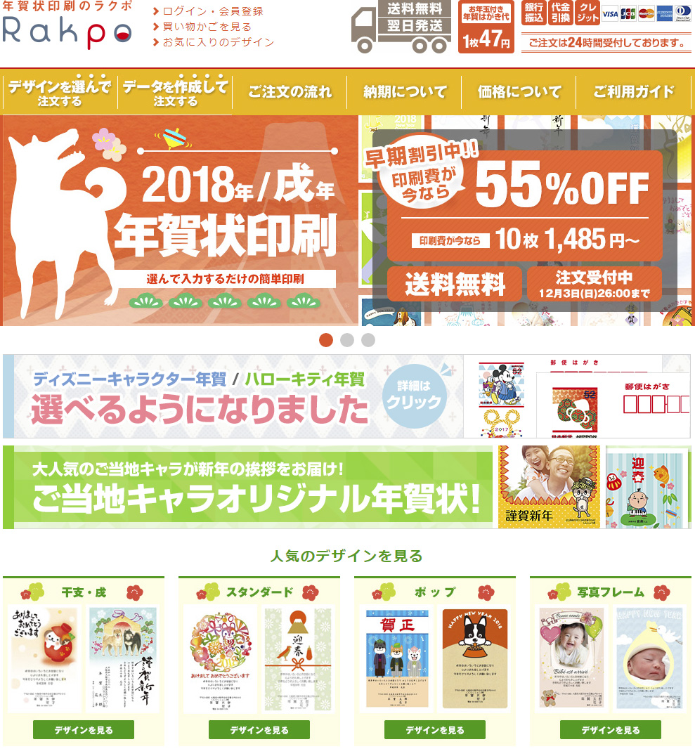 ラクポRAKPOも年賀状印刷料金が安くて人気の年賀状印刷サービスです。